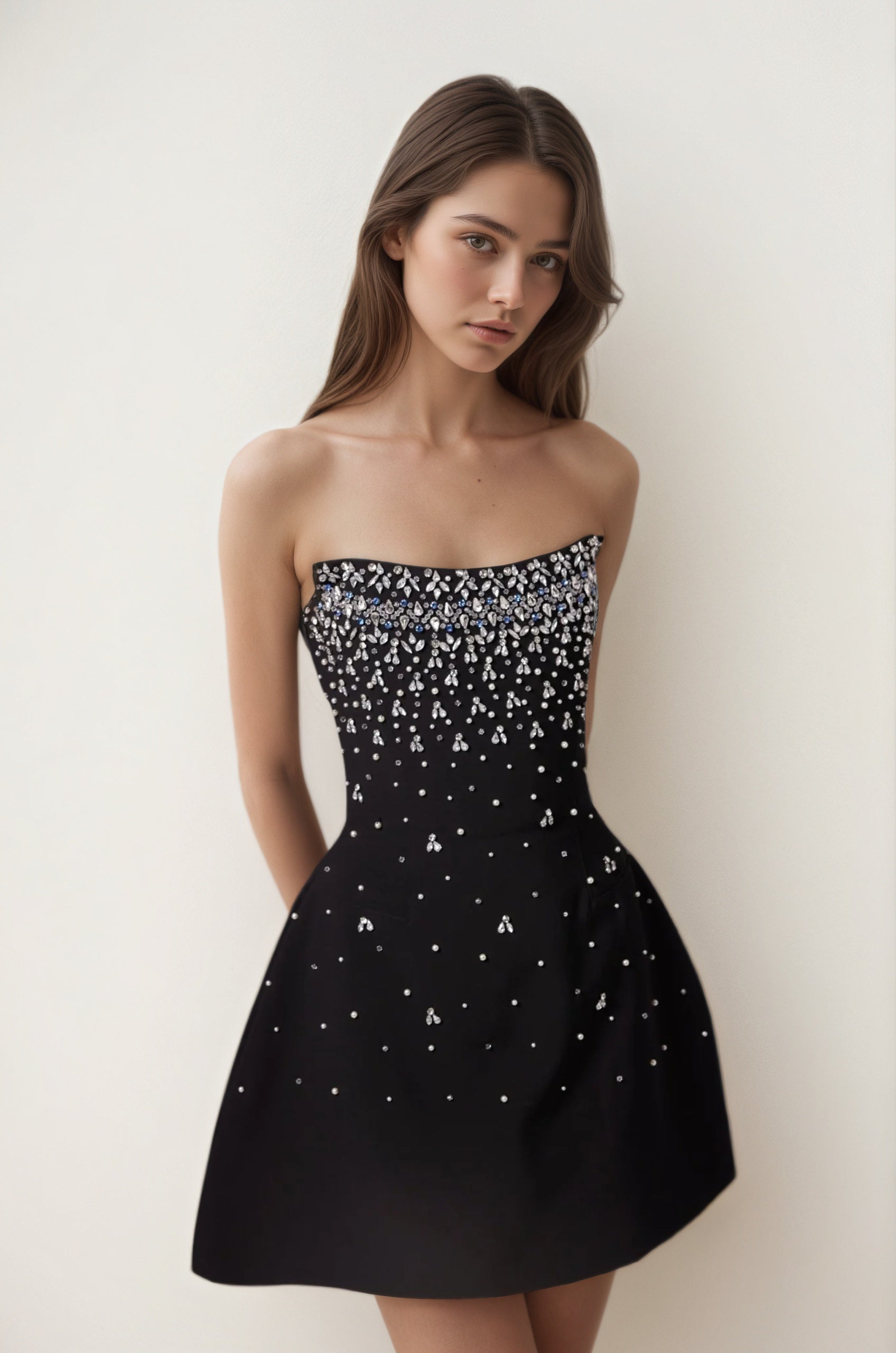 Mireille Black Embellished Strapless Mini Dress