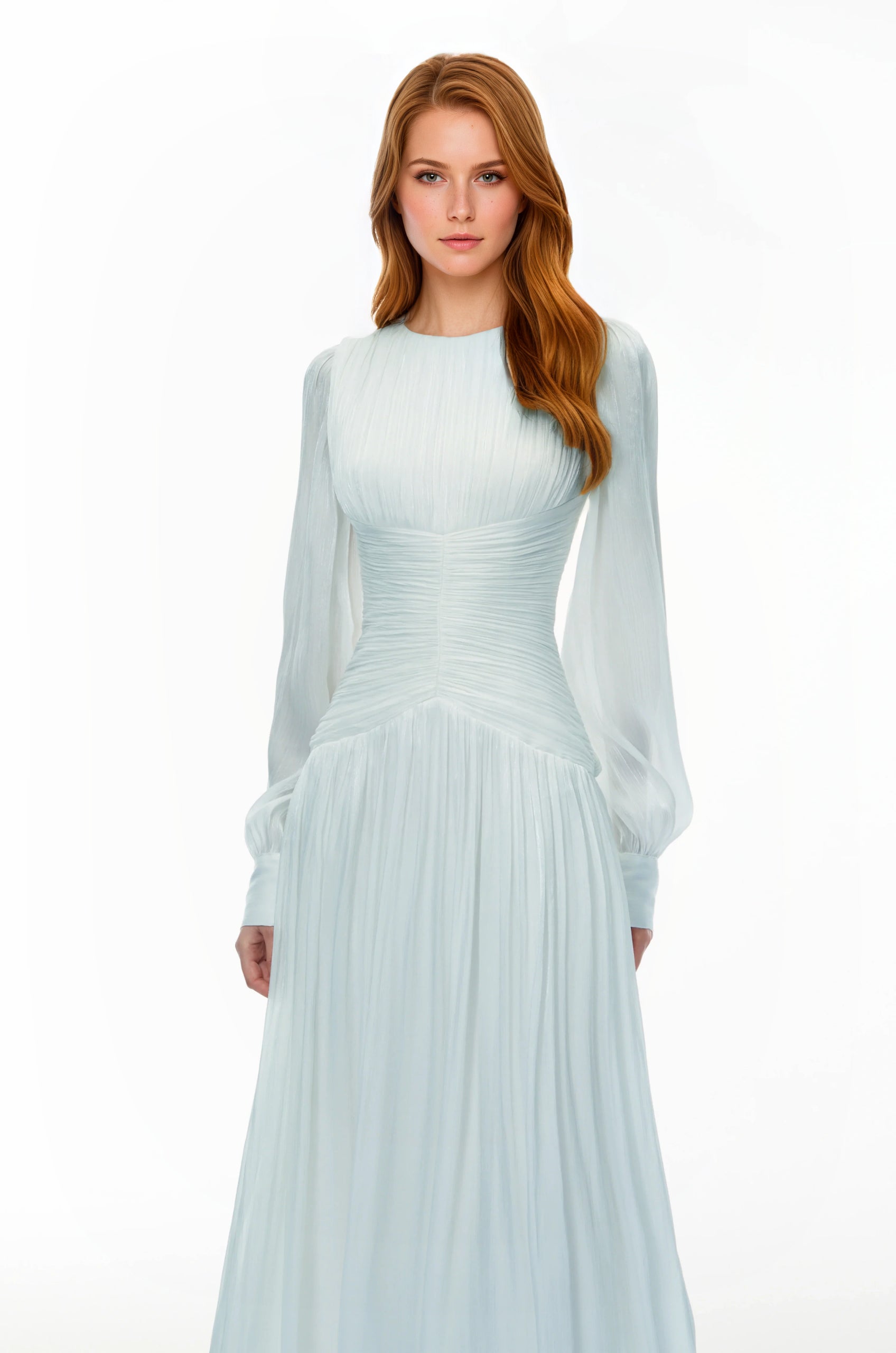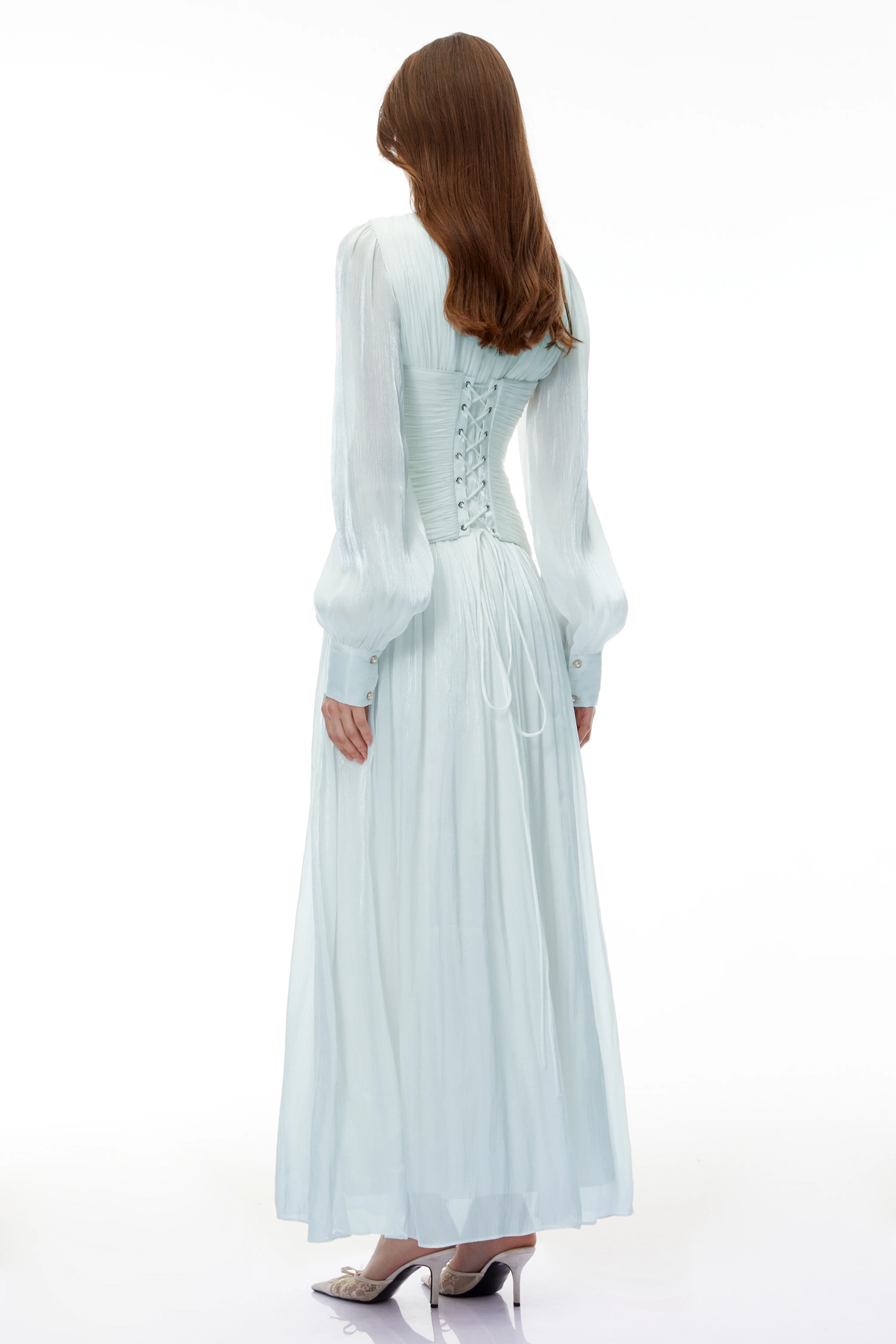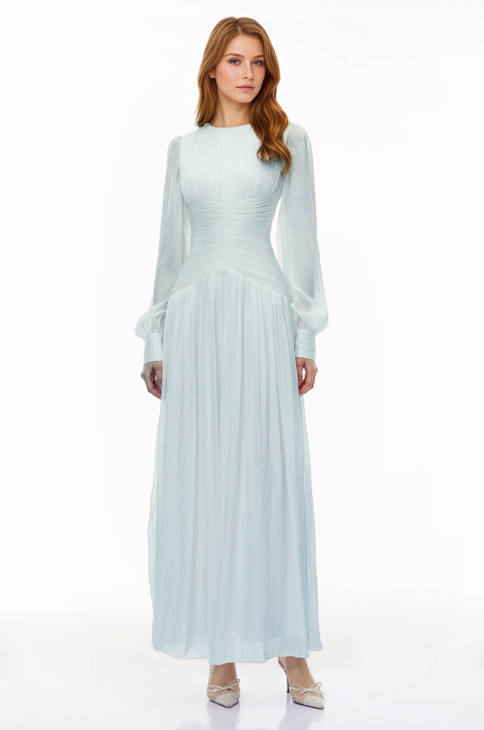 Allegra Green High Neck Glossy Ruched Maxi Dress