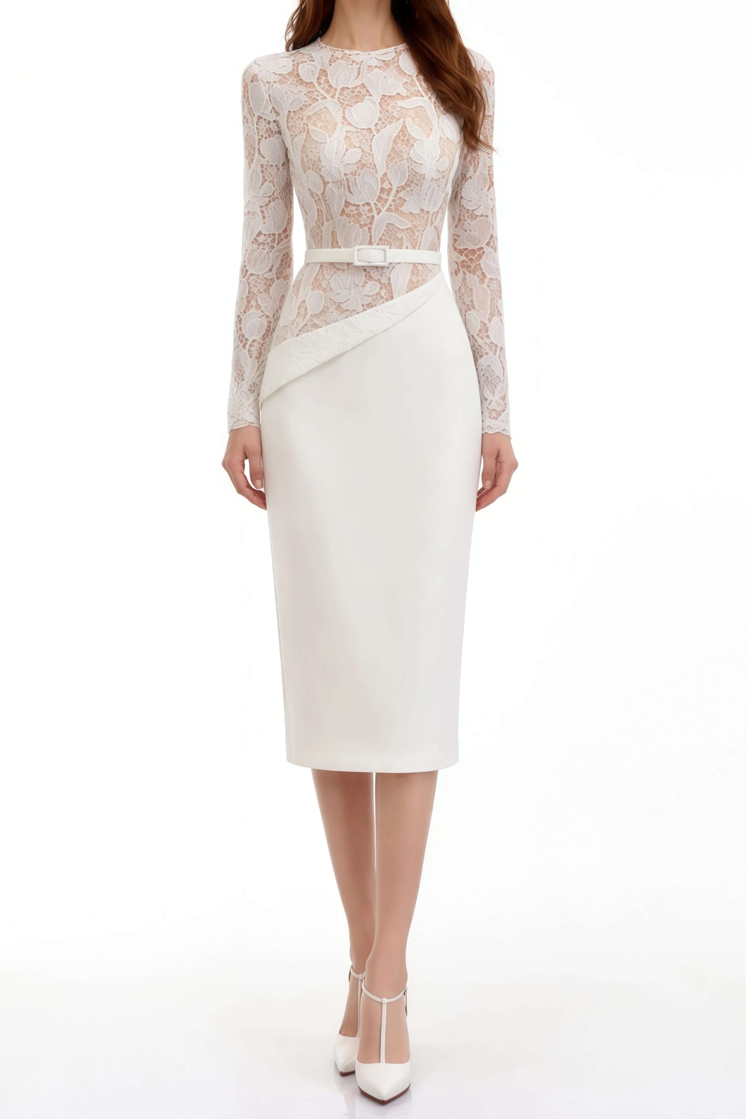 Freya White Lace Panel Midi Dress