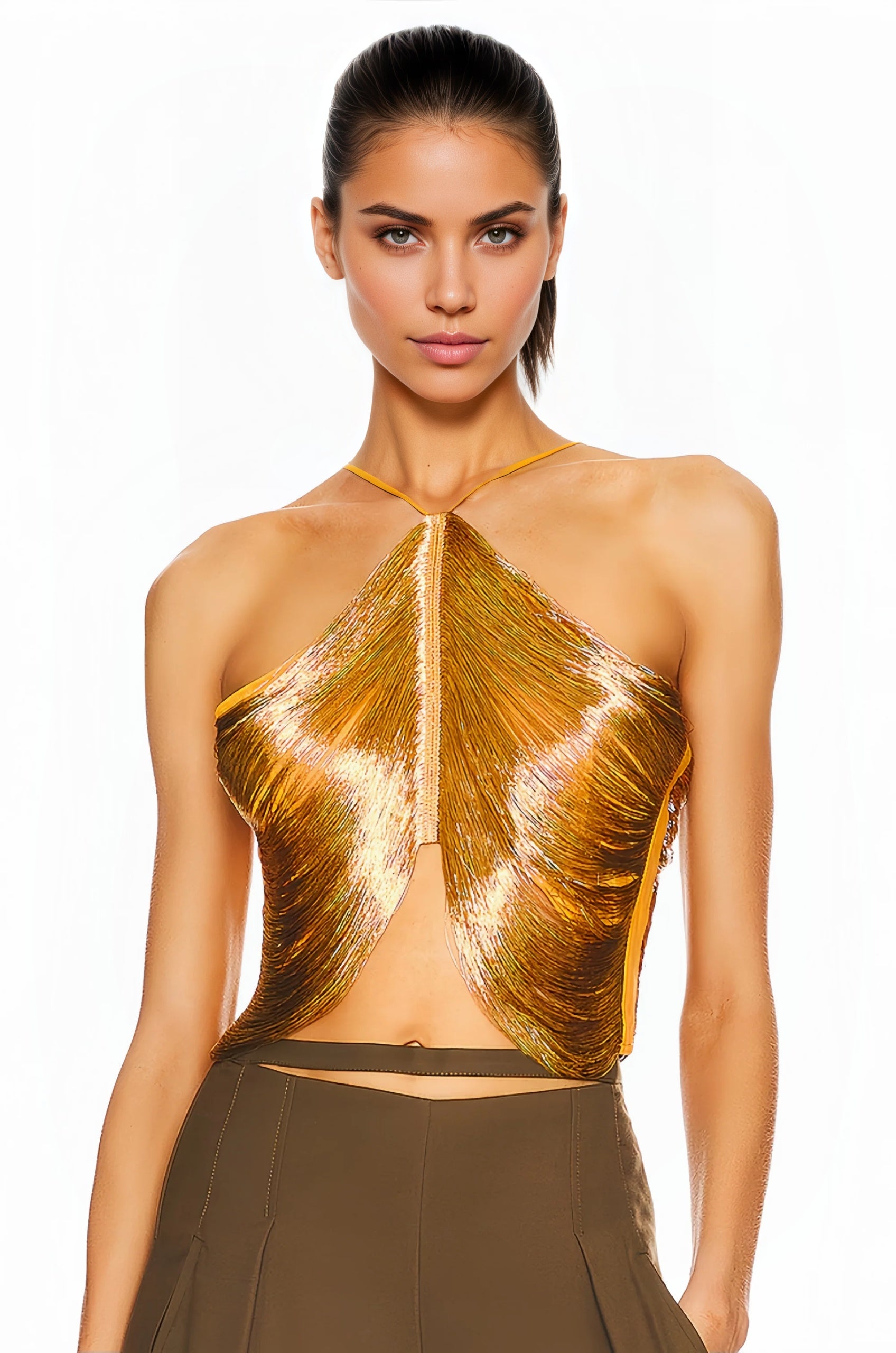 Lanetta Gold Top With Glitter Tassel