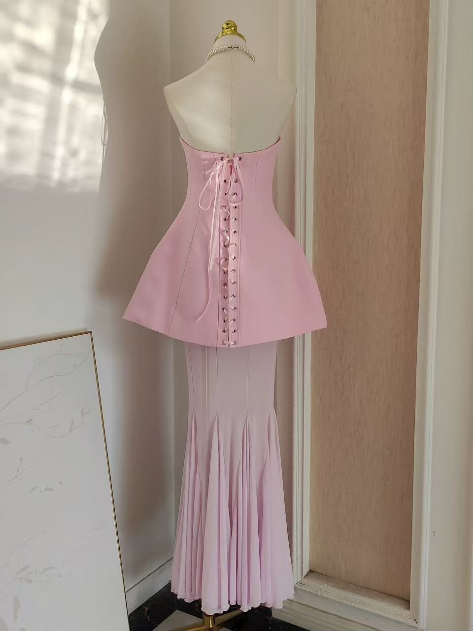 Marisa Pink Corset Dress & Mesh Skirt Set