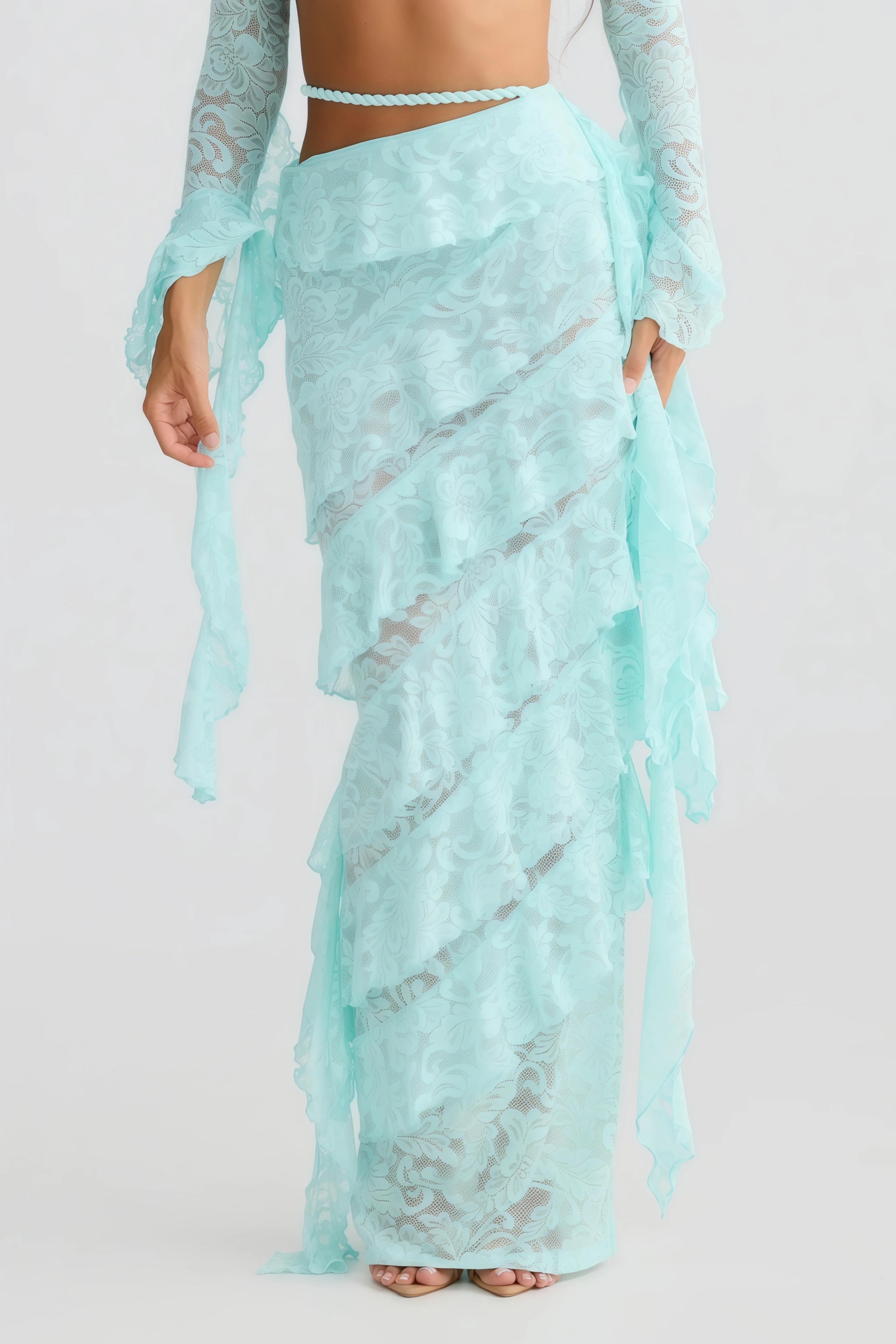 Celestia Mint Green Lace Braided Detail Top & Skirt Set